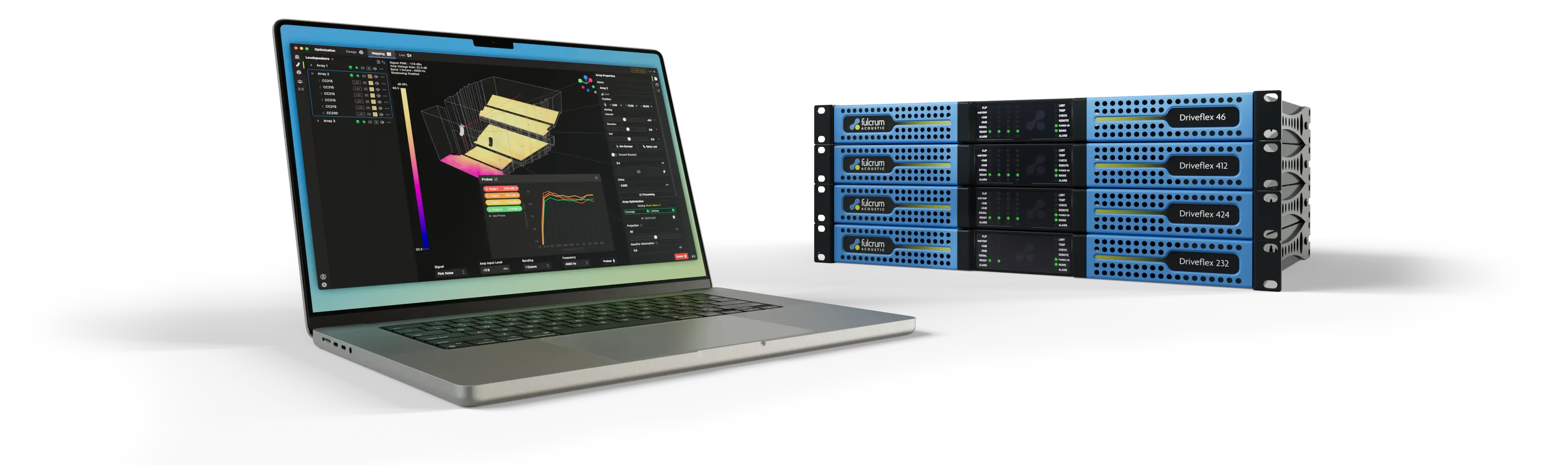 Every Driveflex amplifier is recognized in Fulcrum One, streamlining setup, monitoring, and control across loudspeakers, amplifiers, and processors in one seamless workflow.