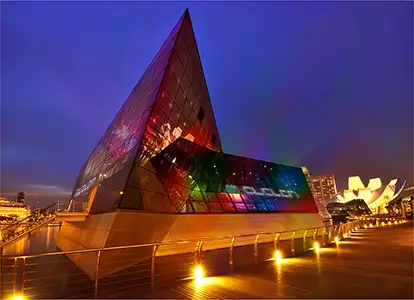 Avalon and Pangaea reside in the Marina Bay Crystal Pavilion, a three-dimensional glass diamond structure designed by noted architect Moshe Safdie. Avalon is split over two levels comprising over 17,000 square feet. The first level is a club lounge, with dance floor and stage which features leading international DJs, live concerts and high-profile events. A second level VIP lounge overlooks the dance floor. An underwater tunnel leads from Avalon to Pangaea, an opulent nightclub and lounge hidden beneath the level of the bay. This legendary ultra lounge has roots dating back to the 90’s and the brand has made a name for itself through sophisticated designs, largely based upon an African safari camp motif.